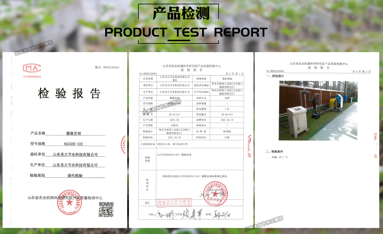 圣大节水生产的滴灌管材管件及各种款式的施肥机,均通过了guo家环境管理体系检测、质量管理体系检测及获得了各种检测认证及产品证书,用户可放心使用。